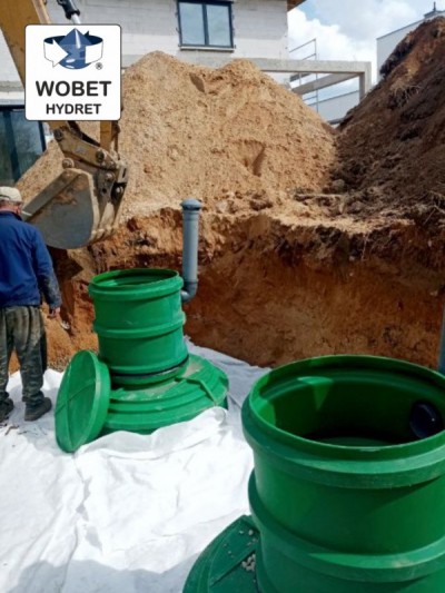 - Studnie chłonną lub układ studni chłonnych na pakietach rozsączających PRO-SCH (również z podsypką ze żwiru płukanego)