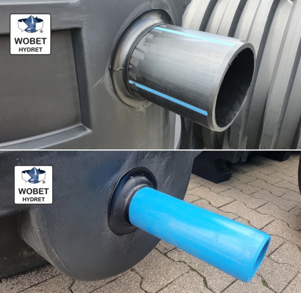 Na wstępie należy podzielić to pytanie na dwa typy zbiorników, tj.: jednopłaszczowe i dwupłaszczowe. W zbiornikach jednopłaszczowych często stosowane są uszczelki „in-situ” umożliwiające szczelne wprowadzenie przyłącza wykonanego z PCV do zbiornika. Jest to szczególnie istotne z uwagi, że polietylen z jakiego są wykonywane zbiorniki nie można trwale połączyć z PCV, który jest standardowym materiałem do produkcji rur kanalizacyjnych. Zbiorniki dwupłaszczowe nie oferowane są z uszczelkami, gdyż konstrukcja ściany zbiornika utrudnia stosowanie takich rozwiązań. Dlatego stosowane są rury z polietylenu spawane z korpusem co zapewnia bardzo trwałe i szczelne połączenie.