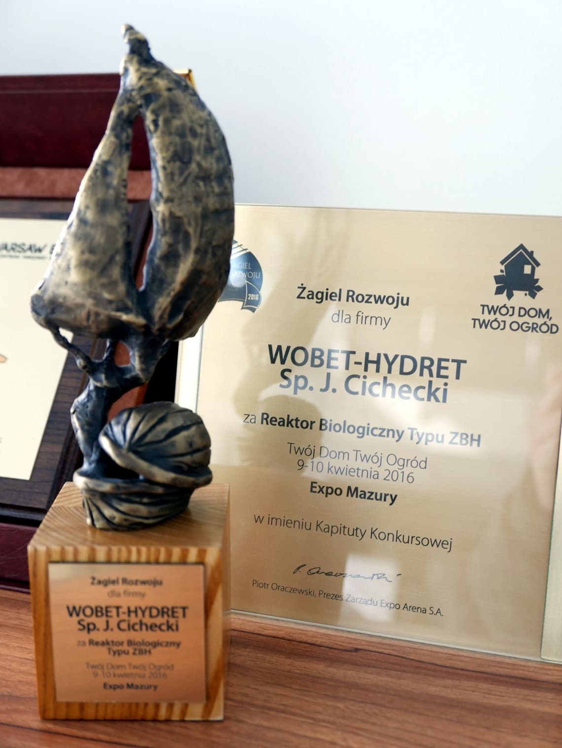 Z przyjemnością informujemy naszych Klientów o zdobyciu przez firmę WOBET-HYDRET kolejnych odznaczeń. Do coraz bardziej pokaźnej kolekcji dołączyliśmy nagrody: Żagiel Rozwoju Expo Mazury i Laur Targów Building Solutions Golden Helmet 2016. Oba wyróżnienia zostały przyznane za produkt REAKTOR BIOLOGICZNY TYP ZBH.