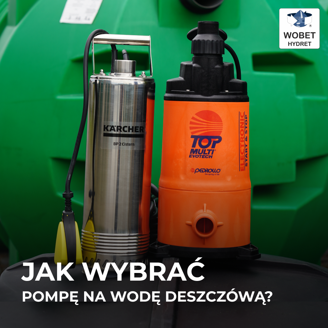 Wybór pompy zależy od zapotrzebowania na wodę deszczową i budżetu. Producent Wobet-Hydret oferuje zbiorniki od 2 m³ do 75 m³. Model Karcher BP2 Cistern jest zalecany do mniejszych i średnich zbiorników do 5 m³, natomiast Pedrollo Top Multi-Evotech jest uniwersalny i pasuje do wszystkich zbiorników.